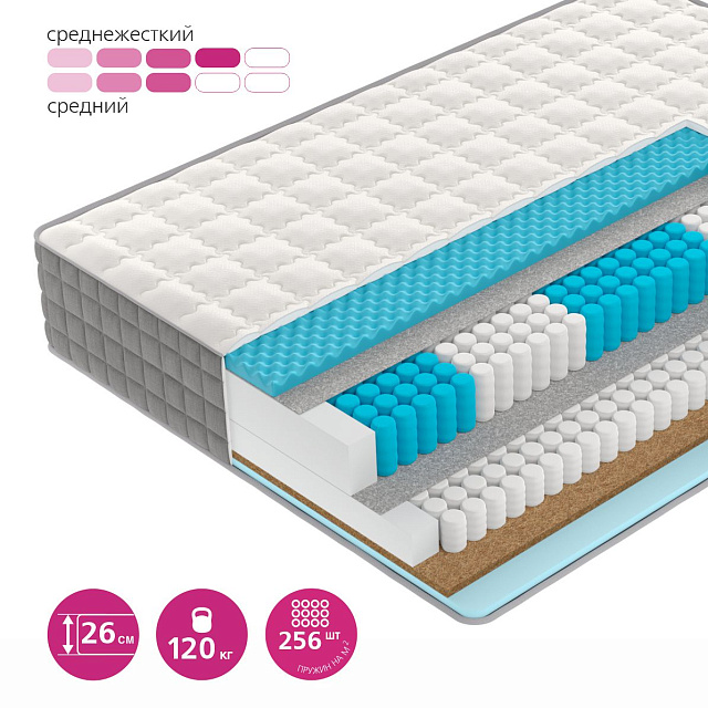 Кокосовая койра, Блок независимых пружин, Чехол, Smartflex, Пена с микромассажным эффектом, Термоволокно, Трикотаж