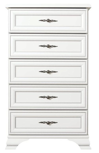 - 5 выдвижных ящиков на металлических роликовых направляющих, в которых без труда разместятся одежда, аксессуары и другие личные вещи;