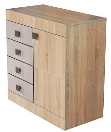 Петли без доводчиков, При желании петли с доводчиками можно приобрести дополнительно и самостоятельно установить их. Детали тумбы, которые в эксплуатации подвержены механическим повреждениям, облицованы кромкой ПВХ толщиной 2 мм. Задняя стенка изготовлена из ХДФ. В правой части установлена одна несъемная полка из ДСП.