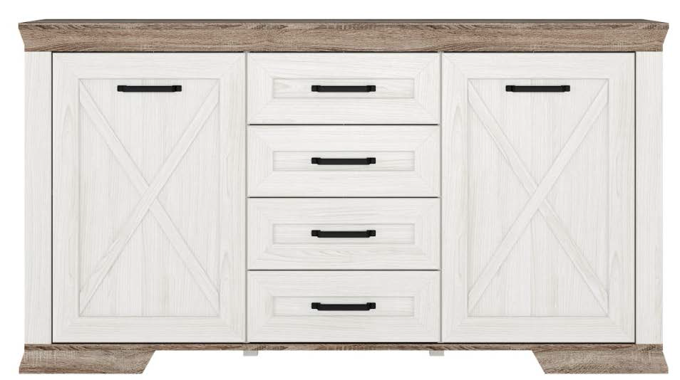 - 2 распашные двери и 4 выдвижных ящика на металлических шариковых направляющих;
