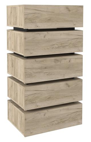 Комод OSLO 6 – практичный и вместительный. Лаконичные гладкие фасады ящиков в декоре Дуб Серый в комбинации с контрастными черными планками делают комод поистине уникальным. Пять выдвижных ящиков глубиной 14 см способны поместить в себя все необходимое, а компактная конструкция сэкономит место в комнате. Все ящики оснащены направляющими полного выдвижения. Такие направляющие делают открывание и закрывание бесшумным.