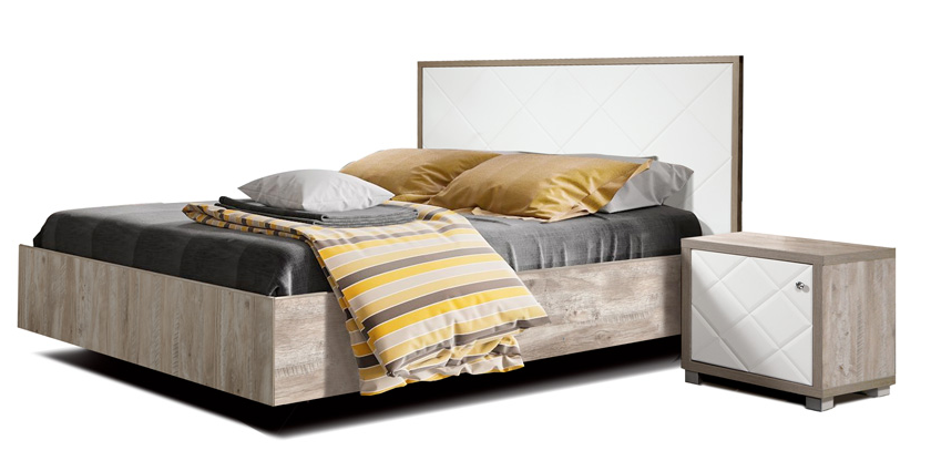 Головной щит и детали кровати, которые в эксплуатации подвержены механическим повреждениям, облицованы кромкой ПВХ толщиной 2 мм. Основание щитовое усиленное тремя силовыми опорами. Щит головной изготовлен из МДФ плёночного. Плёнка ПВХ с эффектом Soft-touch.Soft-touch — это специальное покрытие, которое на ощупь напоминает бархат. Soft-touch приятен на ощупь. Также высокая матовость такого покрытия исключает бликование поверхности и создает особый приятный эффект теплоты и мягкости.