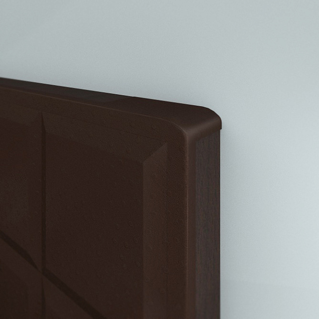 Кровать имеет подъемное ортопедическое основание, которое дает возможность организовать вместительное место для хранения. Решение изголовья: объемная рама, которая акцентирует внимание на рельефных плитках, которые ассоциируются с плитками шоколада. Углы основания кровати закруглены. Верхняя часть основания кровати визуально расположена на подиуме, что придает кровати эффект парения, воздушности. С функциональной стороны позволяет, не мешая ногам, подходить к кровати вплотную. Внутреннее дно кровати - разборное, что позволяет производить влажную уборку и устраняет соприкосновение вещей с полом.