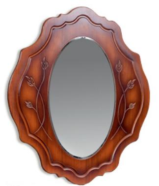 Скрытый тип навески. Изготовлено из эко-массива, защищено лаком на водной основе с закрепленным к нему зеркалом толщиной 4 мм овальной формы с фацетом.