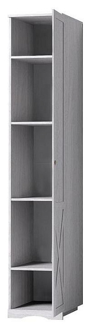 Узкий и высокий шкаф для белья с полками, регулируемыми по высоте. Закрепите в корпус полкодержатели в подготовленные отверстия и установите полки. В комплекте 4 полки. Фигурный цоколь и декоративная раскладка на фасаде - стилевые признаки уютного интерьерного стиля прованс.