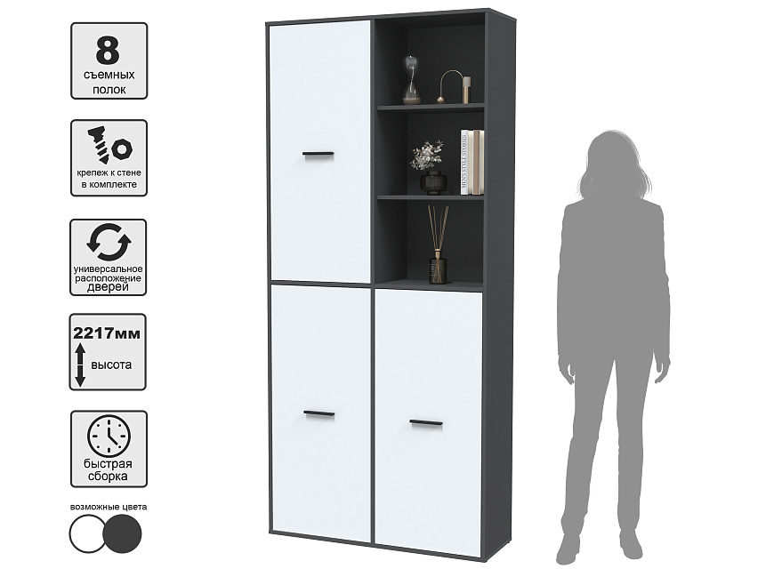 <b>Шкаф Skill-20 (3) Антрацит/Белый<br>