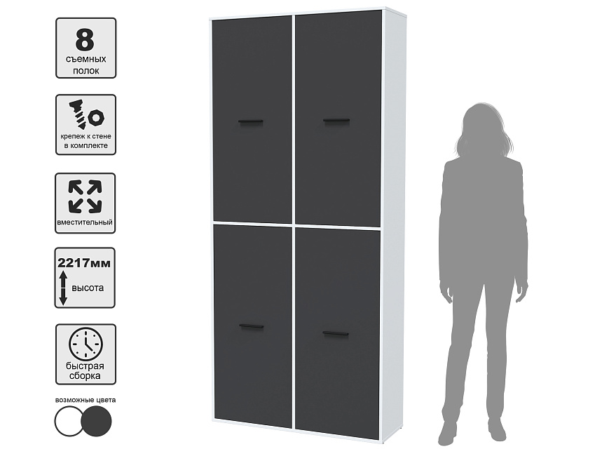 <b>Шкаф Skill-20 (4) Антрацит/Белый<br>