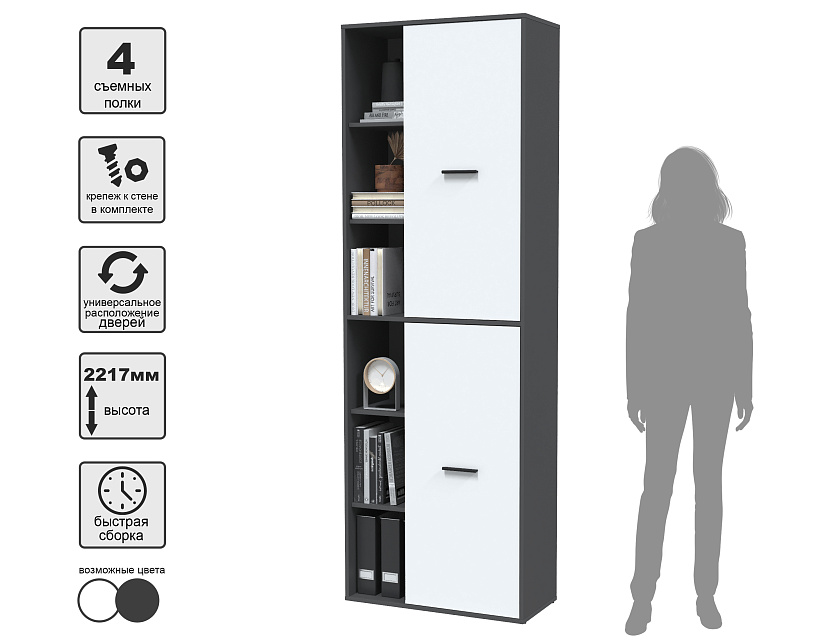<b>Шкаф Skill-22 (2) Антрацит/Белый<br>