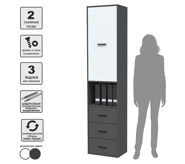 <b>Шкаф Skill-24 (1) Антрацит/Белый<br>