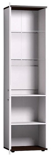 Норвуд 13 Шкаф для посуды - этот модуль создан для красивой посуды, хрупких сувениров. Высокий и узкий шкаф - пенал будет уместен в гостиной любых размеров. Фигурный фасад верхней витрины эффектно совмещает в себе тонированное стекло, ЛДСП и брашированную деревянную вставку. Стеклянные полки - из прозрачного стекла толщиной 6 мм. В нижнюю закрытую тумбу посудного шкафа можно убрать вещи, не предназначенные для посторонних глаз. Фасады шкафа перенавешиваются на левую и правую сторону.