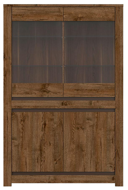 - Верхнее: отделение со стеклянными полками за распашными дверями со стеклянной вставкой;