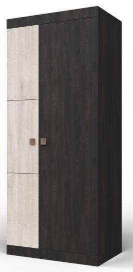 Детали шкафа, которые в эксплуатации подвержены механическим повреждениям, облицованы кромкой ПВХ толщиной 2 мм. Петли без доводчиков, При желании петли с доводчиками можно приобрести дополнительно и самостоятельно установить их. Задняя стенка изготовлена из ХДФ. В левой части шкафа установлены пять несъемных полок из ДСП, в левой части две несъемные полки из ДСП и штанга для одежды. При необходимости левую дверь можно навесить справа, а правую – слева.