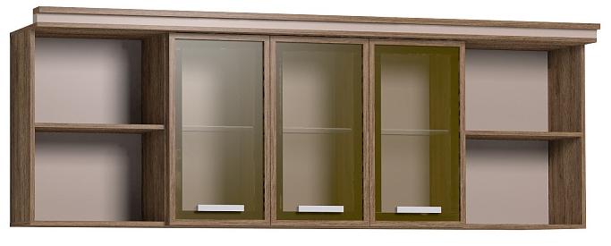 Организовать хранение в комнате подростка поможет вместительный навесной шкаф Nature 81. Навесной шкафчик шириной 2241 мм с двумя открытыми отделениями и тремя за стеклянными тонированными фасадами. Стеклянные полки выдерживают до 2 кг каждая. Шкаф декорирован составным карнизом в стилистике всей молодежной коллекции Nature. Уместно дополнит компоновку с навесным шкафчиком Nature 80 Кровать подростковая или Nature 84 Cтол письменный. К шкафу можно докупить подсветку.