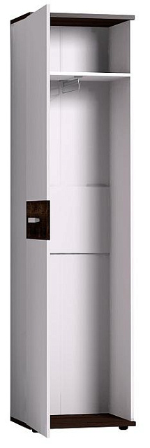 Распашной шкаф для одежды и белья комплектуется выдвижной штангой для одежды. При желании можно докупить и установить модуль Норвуд 72 Полки (в комплекте 3 полки) в заранее просверленные варианты присадки. Верхняя и нижняя детали шкафа толщиной 22 мм в декоре Орех Шоколадный и брашированная вставка - яркие акценты простого белого модуля. Ударопрочная кромка на фасаде толщиной 2 мм продлит срок эксплуатации мебели. Фасад шкафа перенавешивается на ваше усмотрение.