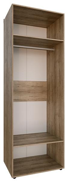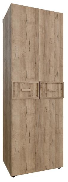 В шкафу оба глухих фасада украшены дизайнерскими вставками и ручками из массива дерева. Корпус и фасады двустворчатого шкафа выполнены в декоре Дуб Серый. Внутренняя организация включает в себя: стационарную штангу для одежды 757 мм и две полки, которые помогут разместить необходимые вещи. Регулируемые опоры помогут компенсировать неровности пола.