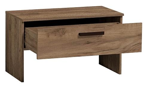 Небольшая тумба шириной 782 мм создана для хранения перчаток, ключей и других мелочей. Выдвижной ящик на шариковых направляющих с легкостью открывается за ручку из массива в декоре Орех шоколадный.