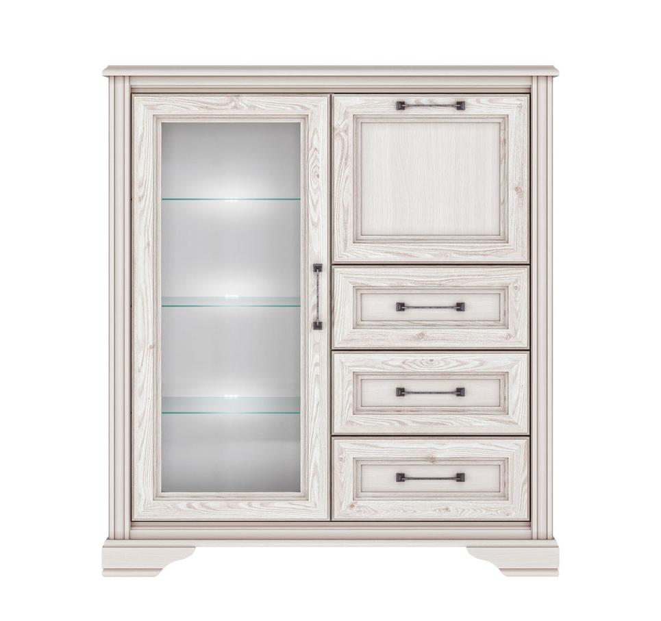 - 1 откидная дверь, 3 выдвижных ящика на шариковых направляющих полного выдвижения, 1 распашная дверь со стеклом (стекло прозрачное);