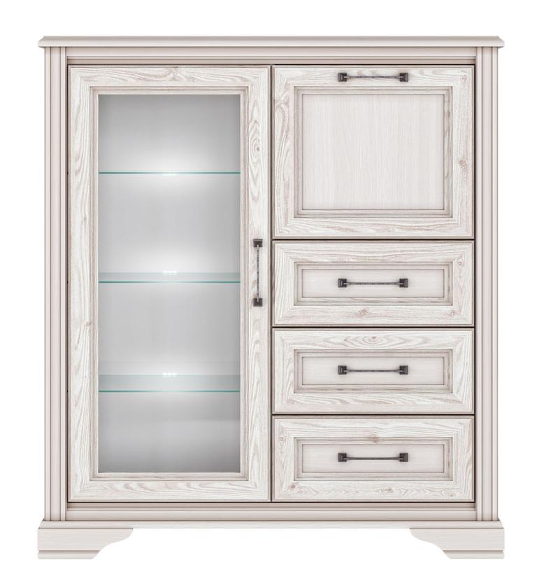 - 1 откидная дверь, 3 выдвижных ящика на шариковых направляющих полного выдвижения, 1 распашная дверь со стеклом (стекло прозрачное);