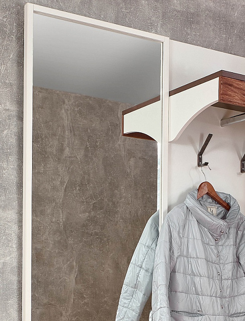 Настенное зеркало в белой раме станет хорошим помощником в прихожей любого стиля. Зеркало во весь рост поможет внести финальные штрихи в ваш образ перед выходом из дома. Специальная защитная пленка с обратной стороны защитит от осколков, если зеркало разобьется.