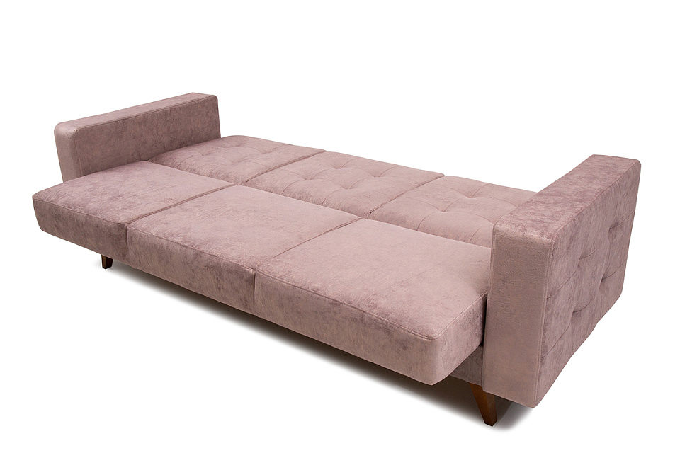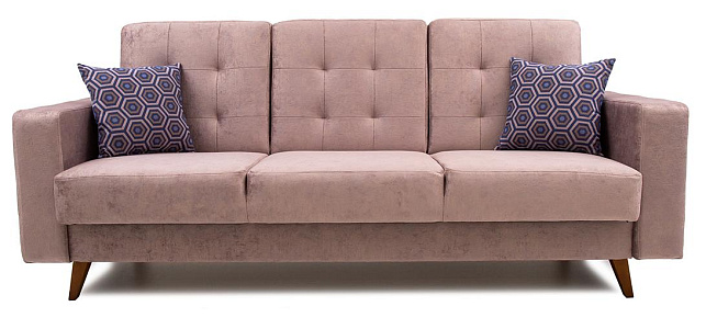Диван-кровать Доменика — современная, практичная модель предназначенная для ежедневного отдыха. Идеальное решение для небольшой гостиной городской квартиры. Диван на опорах из натурального массива, он будет удачно гармонировать с изделиями из натуральных пород дерева. В комплект входят две декоративные подушки. Имеется ящик для хранения. Механизм трансформации «книга» обеспечивает надёжность эксплуатации дивана.