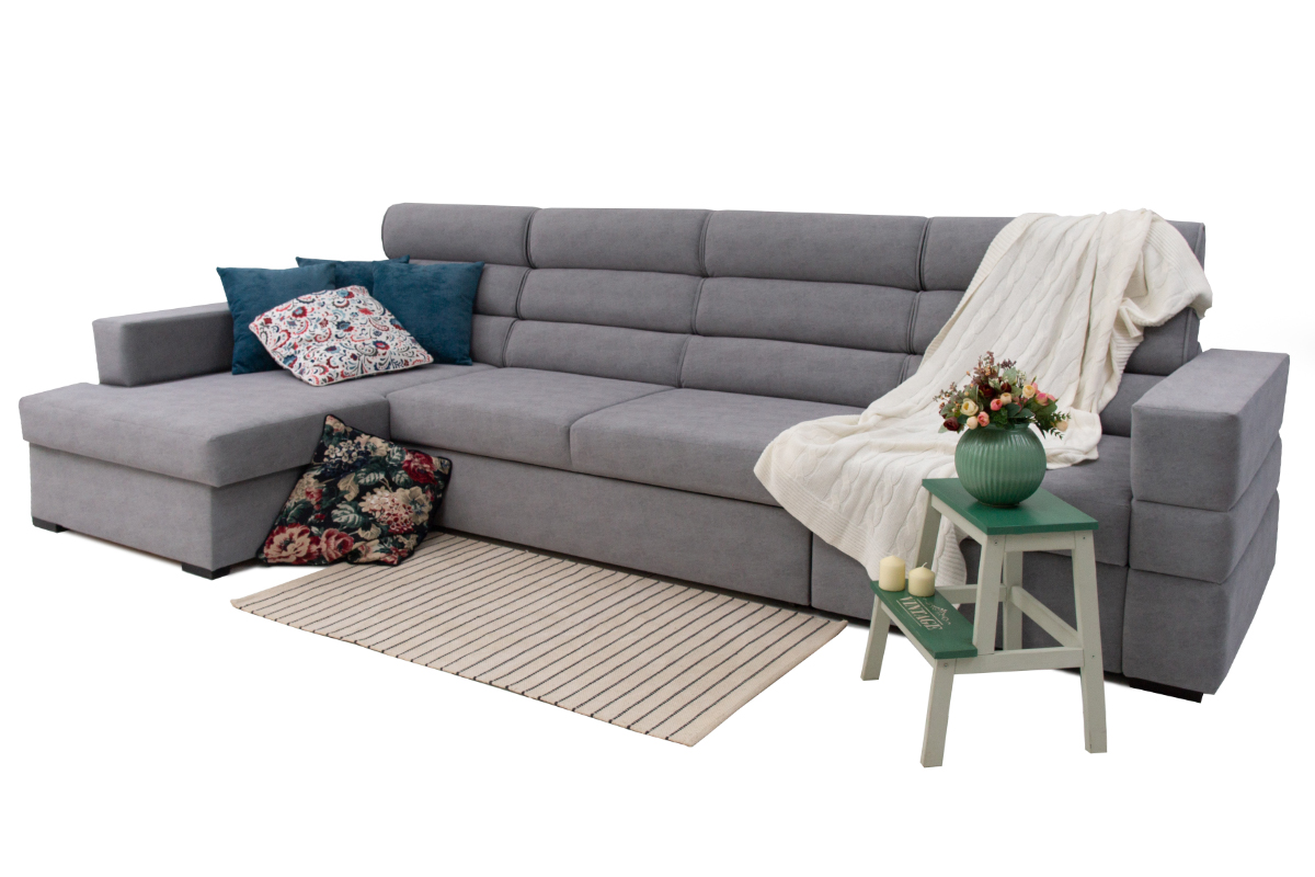 Диван-кровать угловой Эмилия 2 — удобная, простая модель, с большим спальным местом. В разложенном виде представляет удобную 2-х спальную кровать. Отличительной чертой от дивана-кровати углового Эмилия является наличие дополнительного сектора по длине дивана. Сидение на основе независимого пружинного блока. Имеется емкость для постельных принадлежностей в угловой части дивана. Подушки спинки не съемные, оснащены механизмом, который позволяет менять угол наклона. В комплект входят 3 декоративные подушки. Возможна комплектация левого и правого угла. Может изготавливаться в разных цветовых решениях. Механизм трансформации — «дельфин».