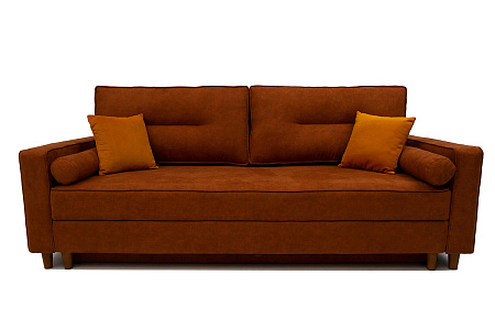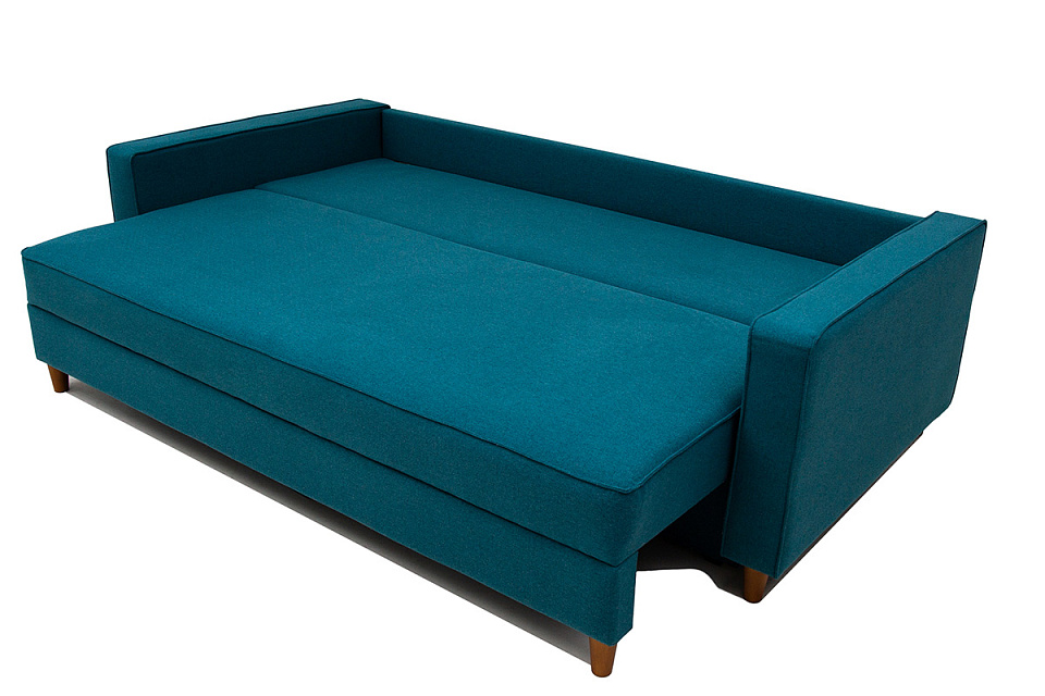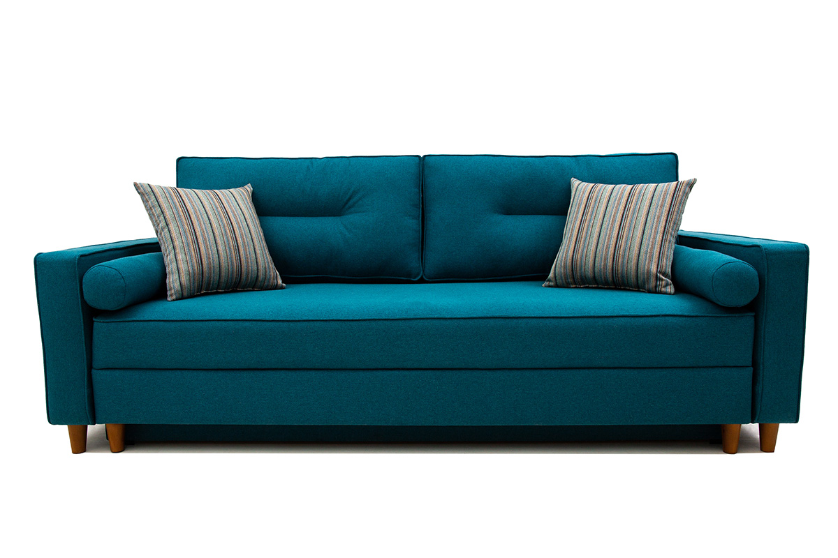 Диван-кровать Галина-1 современная, удобная, простая модель в скандинавском стиле. Широкое спальное место. Сидение и спинка на основе независимого пружинного блока. Имеется емкость для постельных принадлежностей. Боковины съемные, ножки — натуральное дерево. В комплект входят 2 подушки спинки, 2 валика и 2 декоративные подушки. Может изготавливаться в разных цветовых решениях. Механизм трансформации – «еврокнига». <-p>