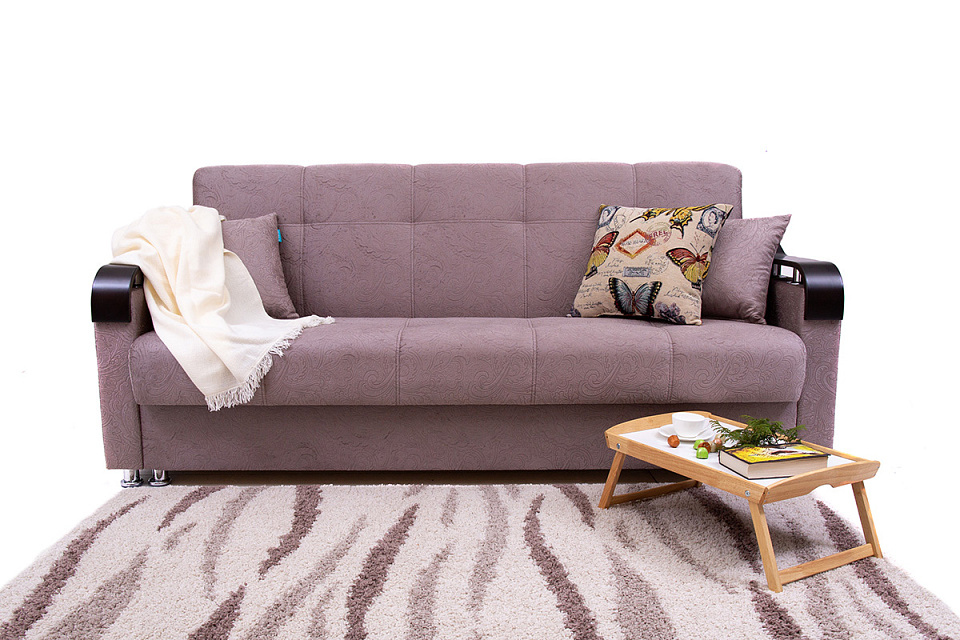 Диван-кровать Лидия — современная, удобная, простая модель. Сидение и спинка на основе пружинного блока. Основание сидения и спинки – пиломатериалы хвойных пород. Имеется емкость для постельных принадлежностей. Боковины диван-кровати съемные с декоративными накладками. В комплект входят 2 подушки. Может изготавливаться в разных цветовых решениях. Механизм трансформации — «книга»