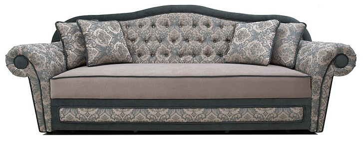 Диван-кровать Людмила — современная классическая модель с оригинальным дизайном спинки и боковин. Верхнее сидение на основе пружинного блока и пружинной змейки. Выдвижное сидение на основе пружинного блока. Спинка на основе пенополиуретана. В разложенном виде представляет 2-х спальную кровать. Так как выдвижная часть дивана находится под основным сидением, отсутствует короб для хранения. Основание сидения – пиломатериалы хвойных пород. В комплект входят 4 декоративные подушки. Может изготавливаться в разных цветовых решениях. Механизм трансформации — «пума»