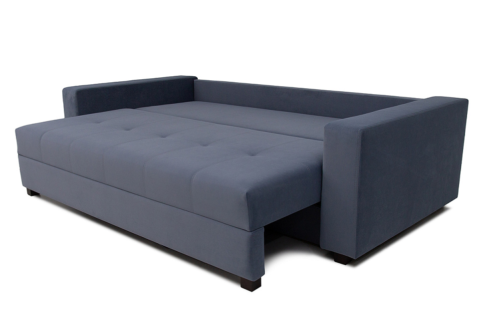 Способ раскладывания: потянуть переднюю часть дивана на себя, выдвинуть сиденье и поставить механизм на пол. Опустить спинку.