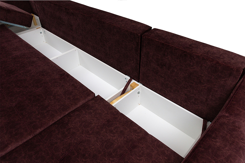 Сидение и спинка дивана на основе независимого пружинного блока. Основание сидения и спинки – пиломатериалы хвойных пород. Имеется 2 емкости для постельных принадлежностей.