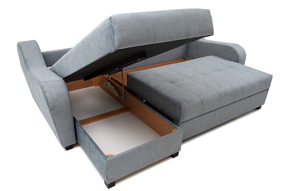 Сидение и спинка дивана на основе независимого пружинного блока. Основание сидения и спинки – пиломатериалы хвойных пород. Имеется 2 емкости для постельных принадлежностей.