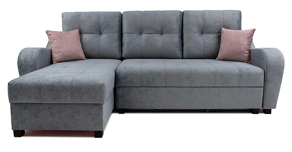 Диван-кровать угловой Ярослава состоит из средней секции 1С, угловой секции с подъемным механизмом 2П с ящиком для хранения, 3-х больших и двух маленьких декоративных подушек. Угол взаимозаменяемый — можно установить как с правой, так и с левой стороны.