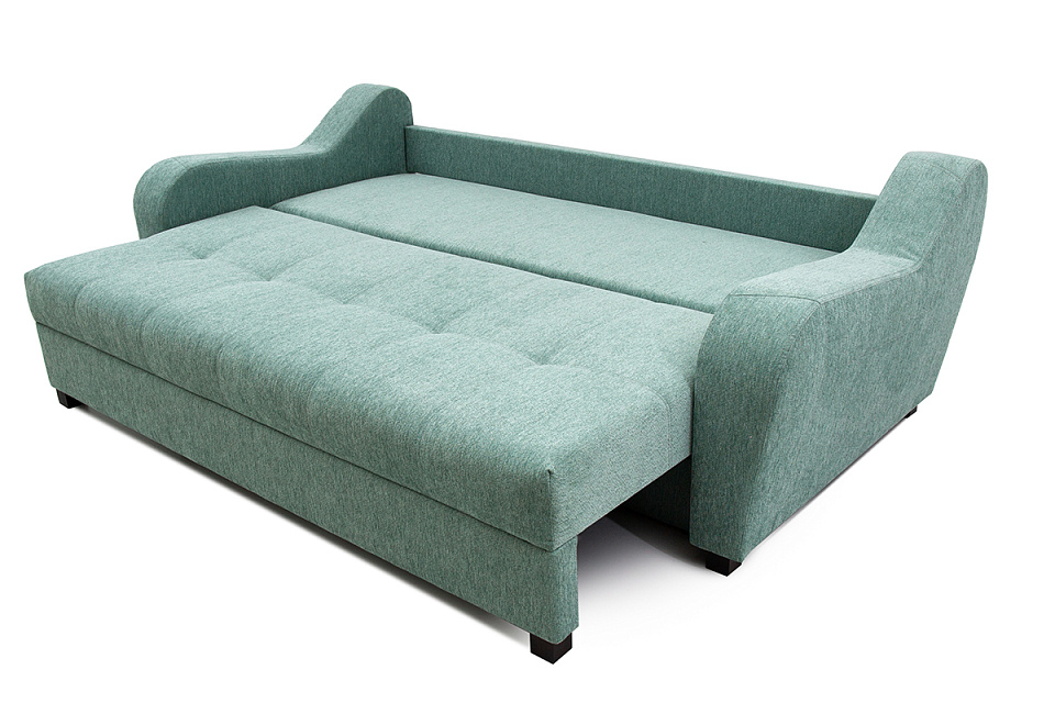 Способ раскладывания: потянуть переднюю часть дивана на себя, выдвинуть сиденье и поставить механизм на пол. Опустить спинку.