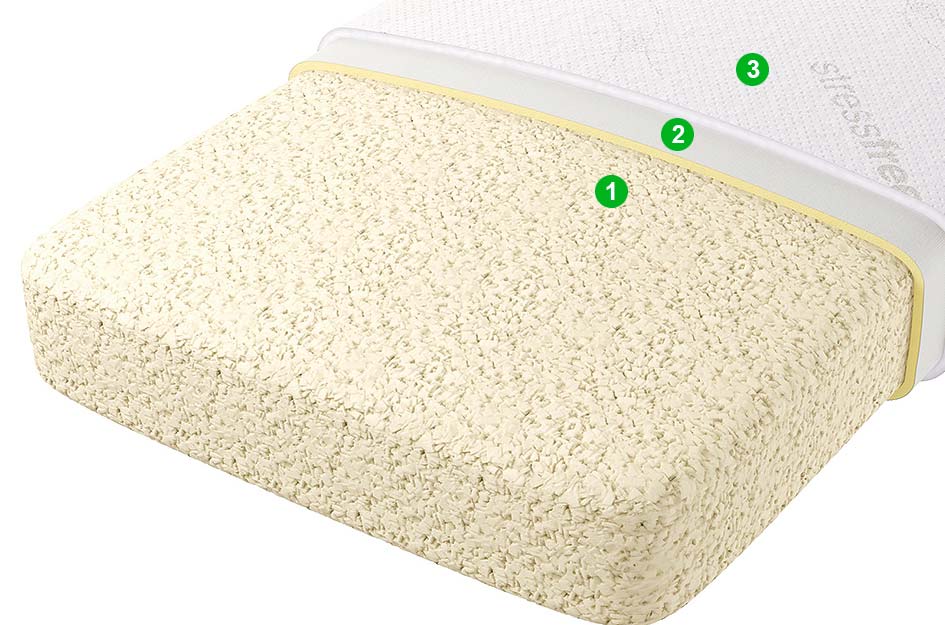 Подушка LatexMem с наполнителем из гранул латекса и внутренним чехлом со слоем пены с эффектом памяти MemotyFoam.