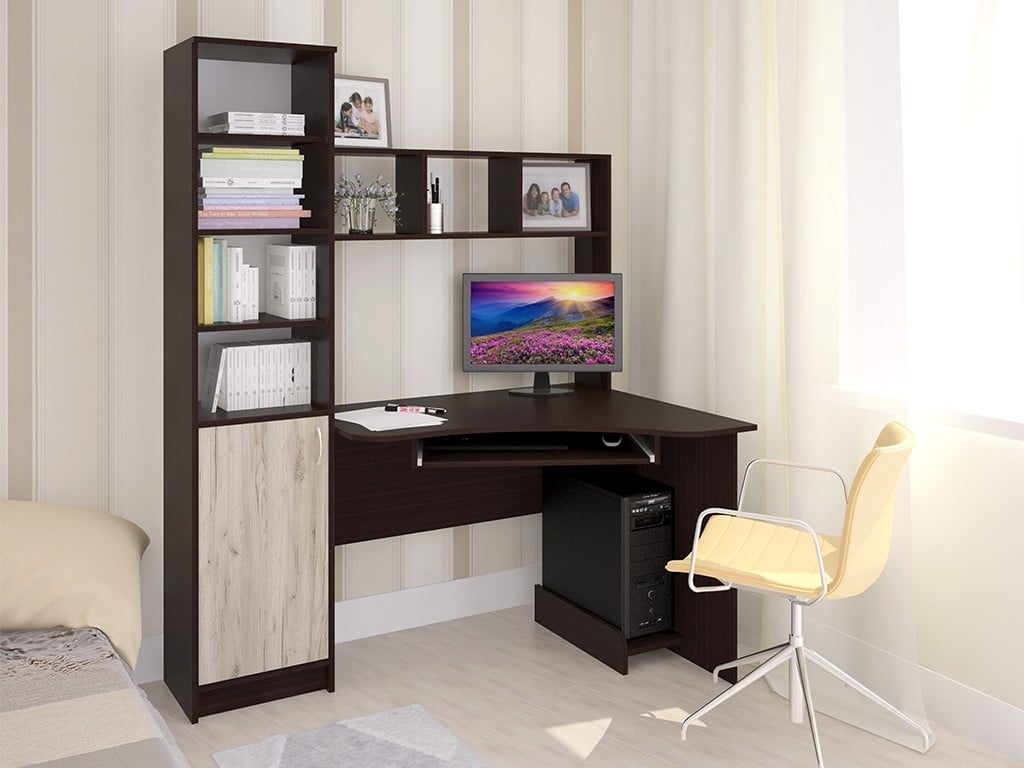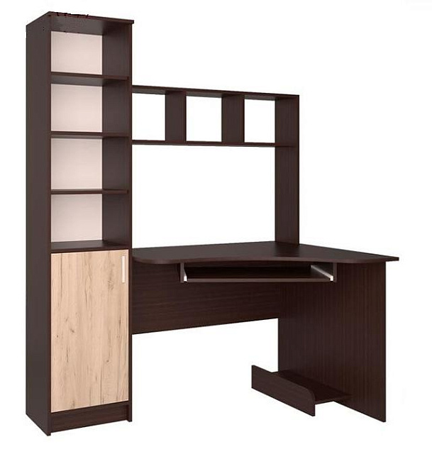 В современной квартире компьютерный стол стал незаменим элементом мебели. Если вы являетесь обычным пользователем ПК, вам вполне достаточно небольшого стола. Ну а если столом будет пользоваться ученик или студент, то пожалуй ему может понадобиться и полки и тумбы, и, вполне вероятно, пеналы, стеллаж для хранения учебных принадлежностей. Стол СК-05 представлен правостороннем исполнении. Возможность выбора цвета дает возможность подобрать цветовую гамму уже под имеющуюся в помещении мебель.