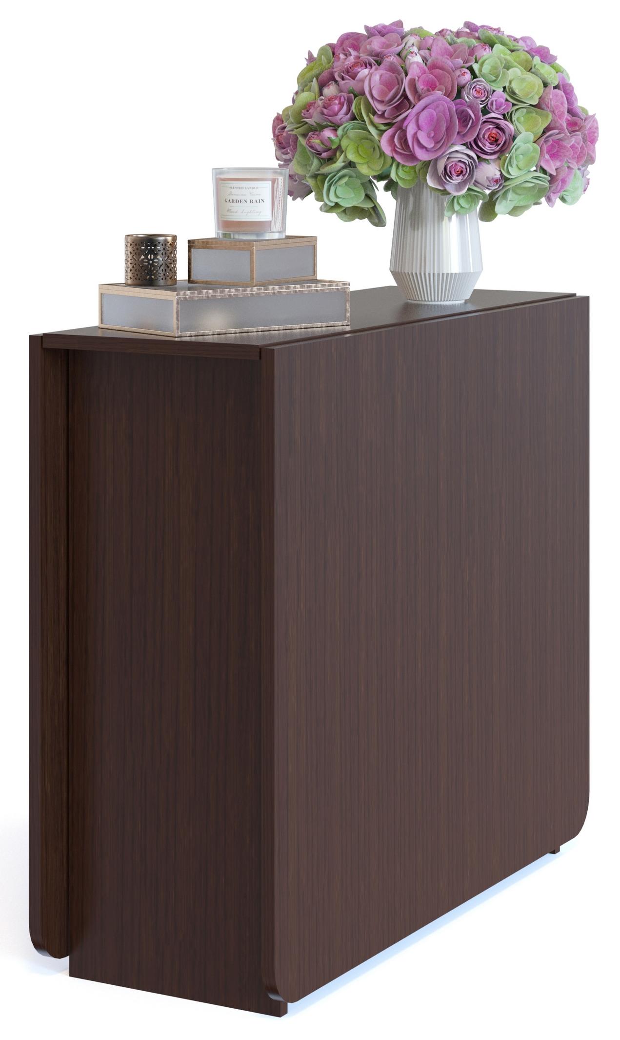 Стол-книжка на металлических опорах. Когда стол сложен, опоры хранятся внутри, в предусмотренном для этого ящике. Очень удобно, что не надо хранить их отдельно. Ширина стола в сложенном состоянии всего 295 мм, тогда как в разложенном виде — 1661 мм.