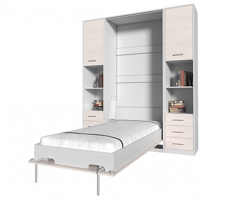 Кровать с откидным механизмом является трансформируемой конструкцией. Изделие при необходимости модифицируется в шкаф, мебельную стенку, помогая экономить пространство в малогабаритных квартирах. Конструкция удобна в использовании, компактна, технологична, обеспечивает качественный отдых.