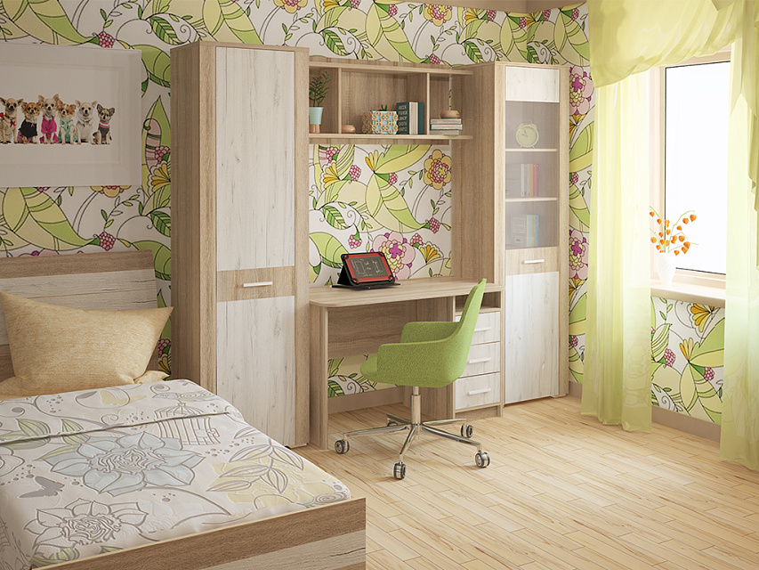 Набор Коламбия-5 спланирован для детской комнаты. Вариант обладает богатой древоподобностью и уникальной фактурой. А декоративные панели, объемные плиты, комбинированные в контрасте дверей и свежей фурнитуры, выделяют коллекцию Коламбия.