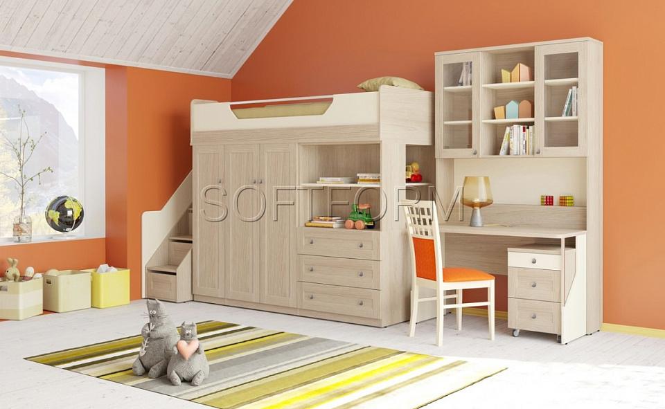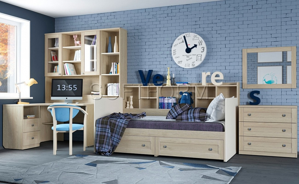 Отличительным преимуществом коллекции является многообразие вариантов стеллажей, которые прекрасно сочетаются с кроватями или столами и образуют оригинальные по дизайну мебельные композиции. Коллекция мебели ВЕРЕС - это отличный вариант создания условий для развития, отдыха, творчества и воспитания детей и молодежи.