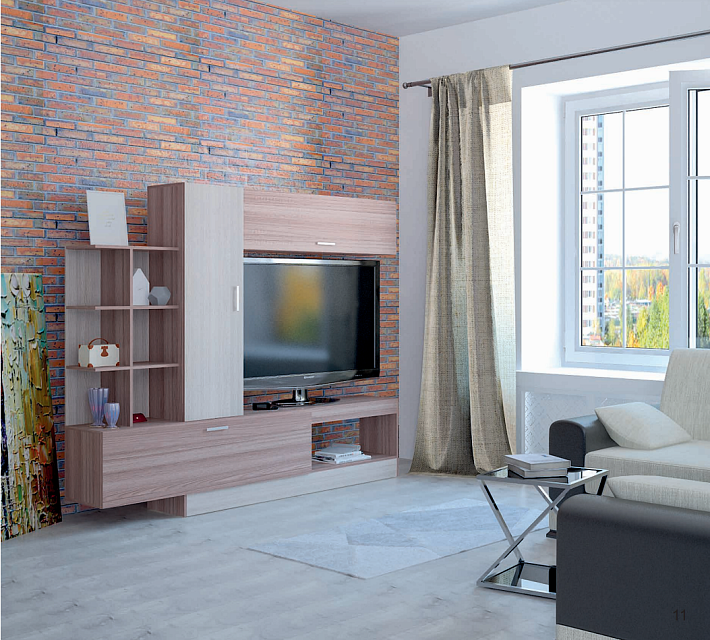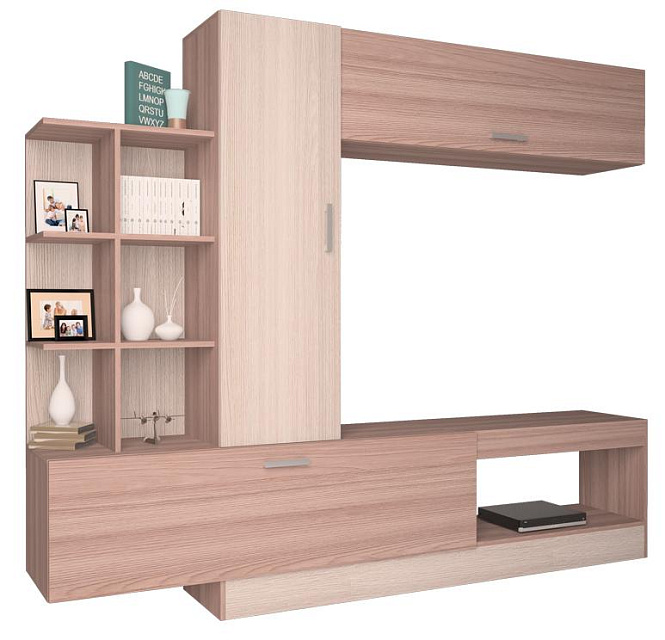 Стенка Аризона-9 - изделие средней компактности с акцентом на евростиль. Верхний элемент изделия навешивается к стене для вашего удобства и безопасности. Многообразие функциональных модулей поможет вам разместить необходимую технику, а изобилие полок и ниш вместят все нужные предметы интерьера и быта. Аризона-9 восхищает своей многовекторностью форм.
