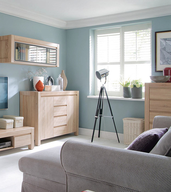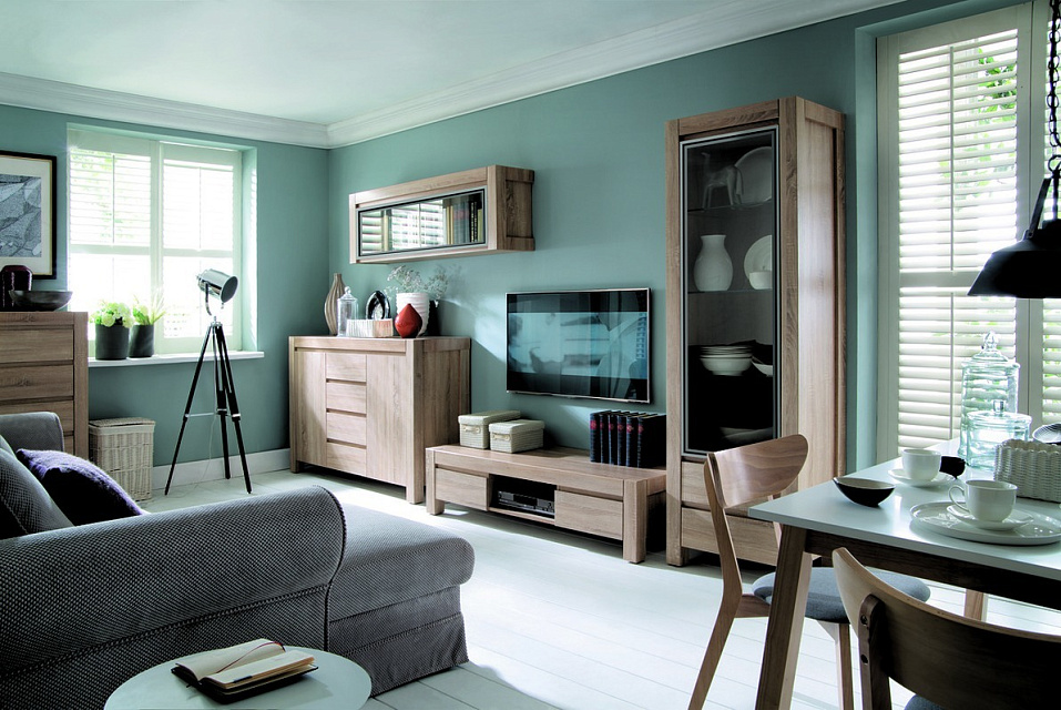 Коллекция носит массивный, монолитный характер, но при этом сохраняется легкость конструкций. Цвет дуб сонома, в котором выполнена система, подчеркивает неповторимость и элегантность мебели.