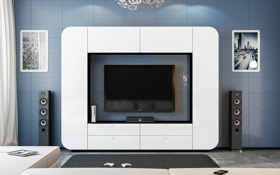 Стенка iMeb отлично подойдет для людей, живущих в духе времени, которые следят за стилем и модой. Стенка отличается интересным внешним видом, а также тем, что в ней используется самая современная фурнитура. В iMeb используется система Push-to-Open, которая позволяет с легкостью открывать дверцы секций легким нажатием руки.
