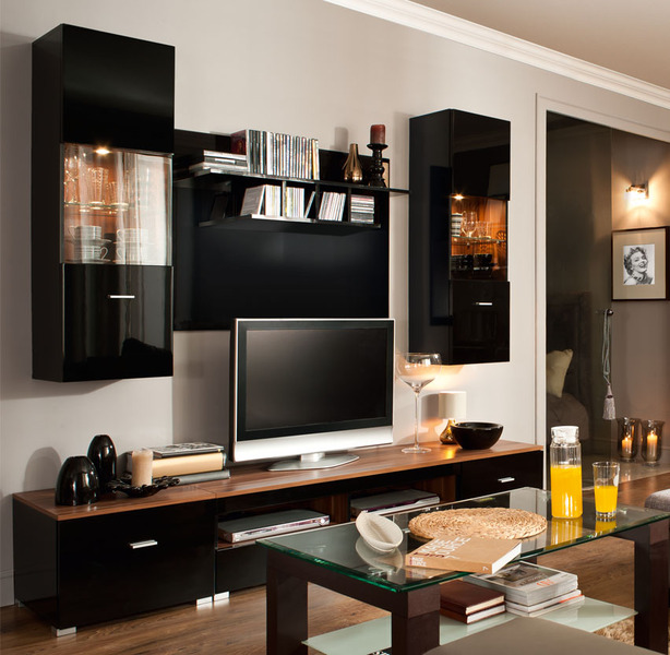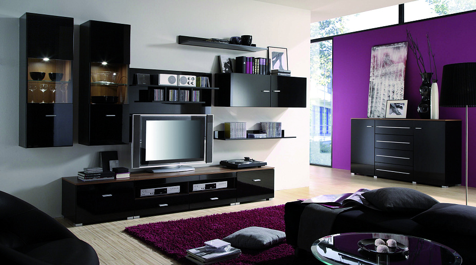 Стильный набор мебели в стиле хай-тек. Глянцевые фасады, правильные формы элементов, светодиодная подсветка - акценты, позволяющие создать гостиную для приверженцев активной урбанистической жизни.