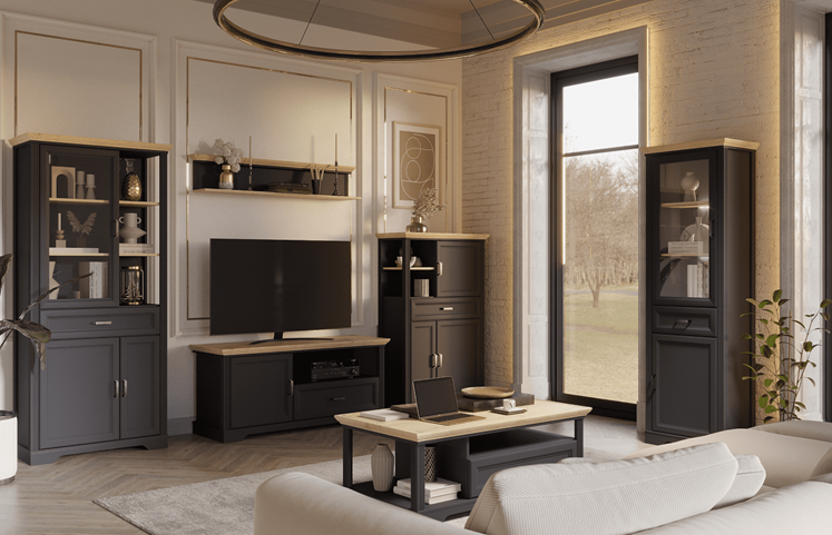 Нетривиальное сочетание классики и скандинавских мотивов: столешницы с древесной текстурой, изящные гофрированные планки, металлические ручки и стильные ножки. Насыщенный графитовый цвет фасадов и фурнитура с системой плавного закрывания — отличительные особенности коллекции Jasmin, выполненной в «темном скандинавском» стиле.