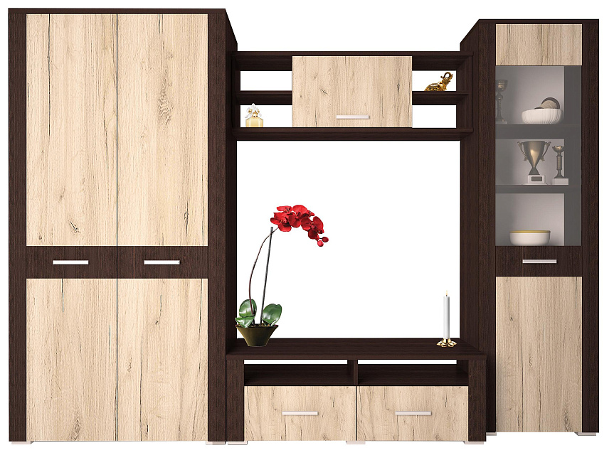 Набор Коламбия идеально подойдет для Вашей гостиной. Вариант обладает богатой древоподобностью и уникальной фактурой. А декоративные панели, объемные плиты, комбинированные в контрасте дверей и свежей фурнитуры, выделяют коллекцию Коламбия.