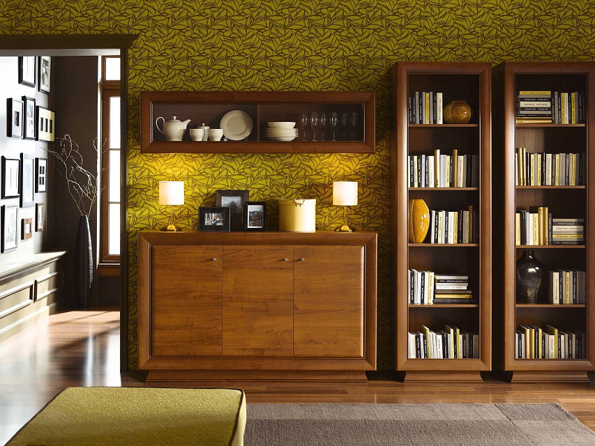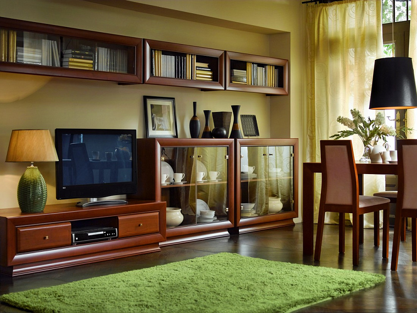 Largo Classic - эксклюзивная классическая модульная система в цвете "патинированная вишня итальянская". Выпуклые фасады с декоративной рамкой, аккуратные латунные ручки подчеркивают характерные особенности системы. Вертикальные элементы оборудованы массивным, фрезерованным цоколем.