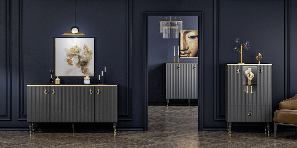 Дизайнерские резные ножки из дерева придают коллекции легкость, а инновационное матовое покрытие от итальянских производителей будто приглашает дотронуться до бархатистой волны фасада и ощутить тепло прикосновения.