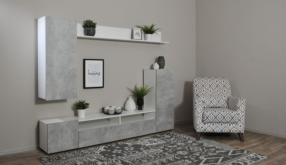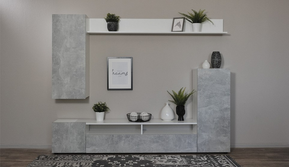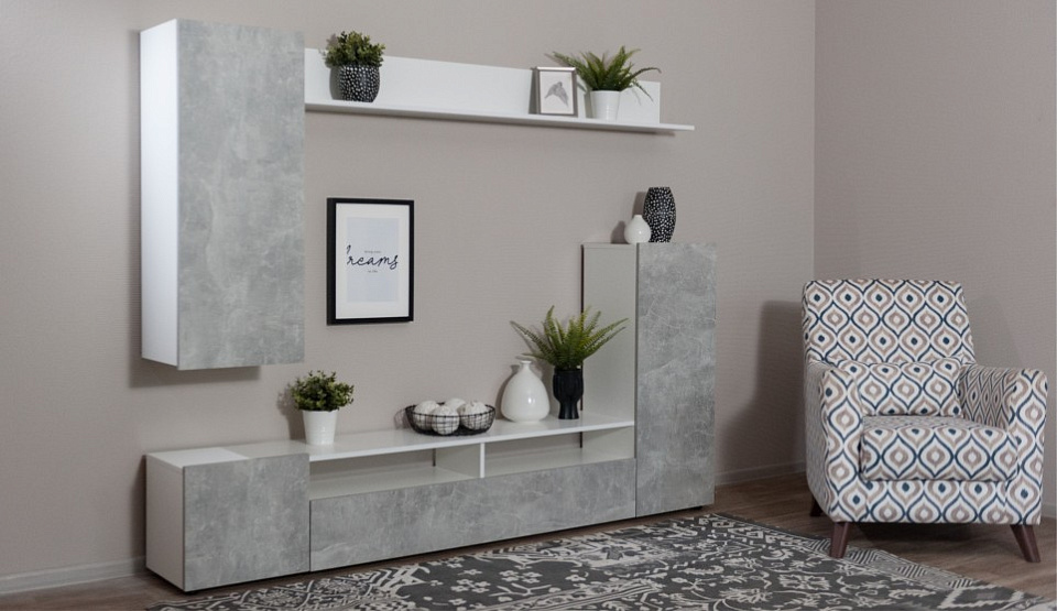 Стенка Нео Белый жемчуг/Ателье светлый