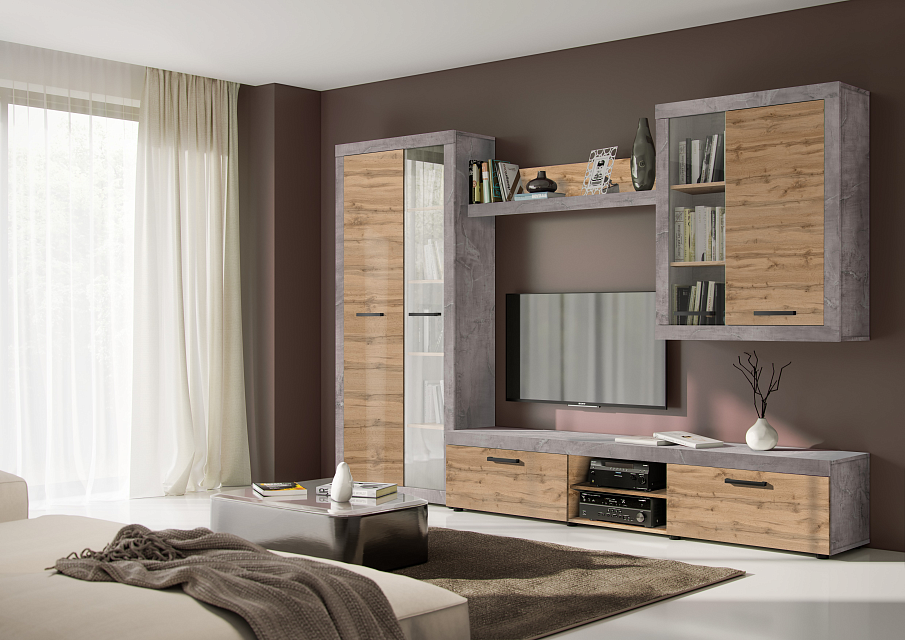 Если вы не приверженец строгого минимализма и любите, чтобы все было под рукой, значит набор мебели Oslo создан специально для вас. Большое количество мест для хранения вместе с необыкновенными цветами фасадов сделают гостиную не только функциональной, но и очень уютной.