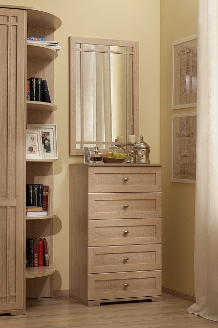 Романтичный классический интерьер помогает воссоздать мебель Sherlock в мягком древесном декоре Дуб Сонома.